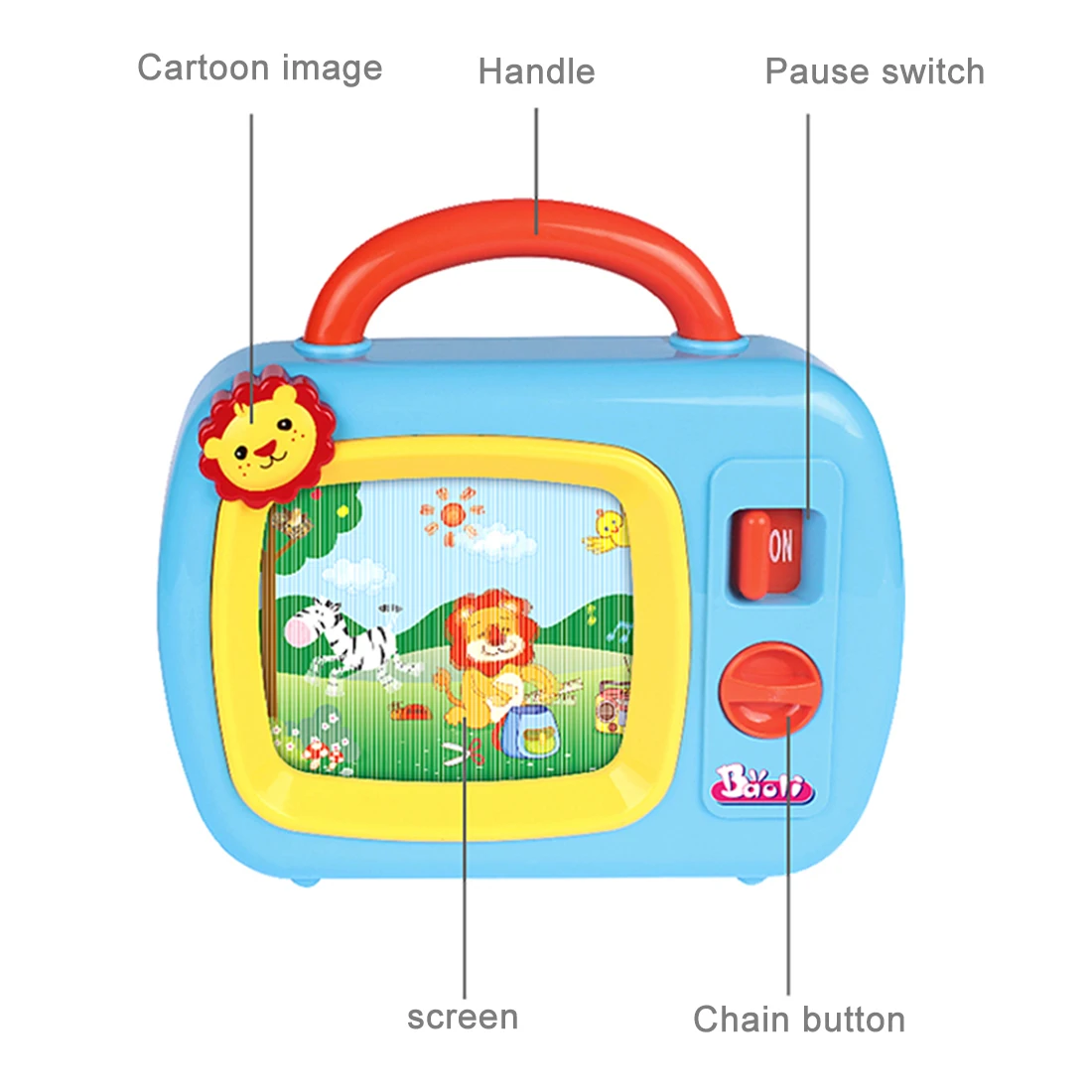 Review Baby Cartoon Musical Small TV Toy with Scroll Image Music Box Learning Educational Toy - Blue Pink