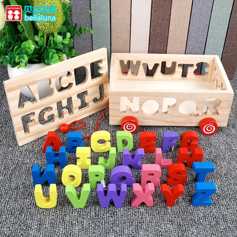HOT Sale Baby Educational Force Toy with Numbers Lettered Shape Matching Building Blocks Toys Trailer Infant