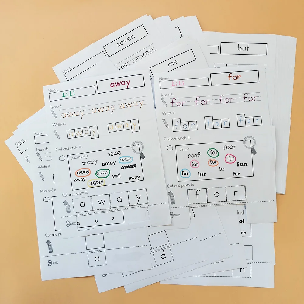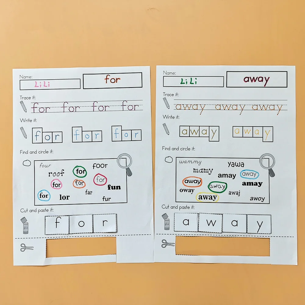Review 150 Sight Words DIY Wooksheet Children Learning English language Exercise reading coloring books fo